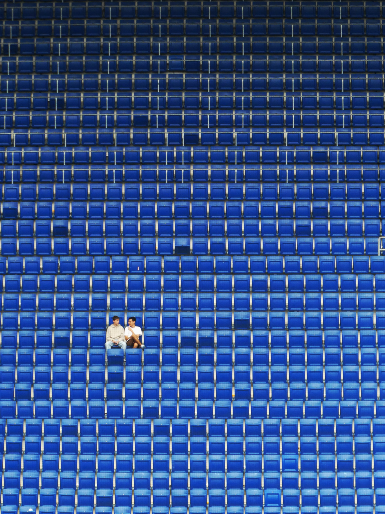 Diesmal wird es, dem Wetter angepasst, sportlich. Das Bild Juli 2023 kommt von Sybille Ries und zeigt zwei Sportbegeisterte auf den “nicht vollbesetzten” Rängen des Hoffenheimer Stadions.